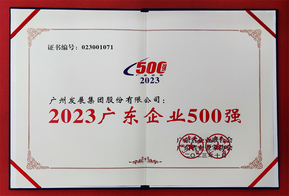 广州ag九游会登陆j9入口集团获评2023年广东企业500强