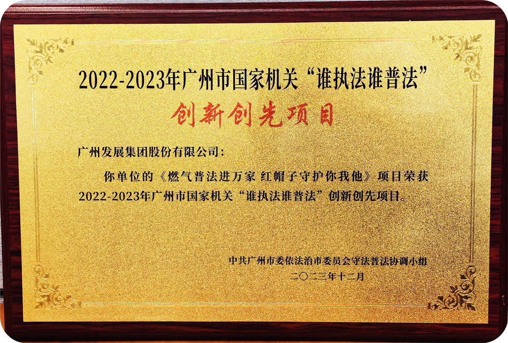 广州ag九游会登陆j9入口集团坚持以习近平新时代中国特色社会主义思想为指导,深入学习贯彻党的二十大、二十届三中全会精神和习近平法治思想,全面落实普法工作责任制,打造“红帽子志愿服务队+营业厅+大众媒体”普法模式,切实做好内部普法,积极开展公益普法,实现普法与经营管理工作融合,为建设国内领先的绿色低碳综合智慧能源企业集团夯实法治基础,为法治广州建设作出积极贡献。