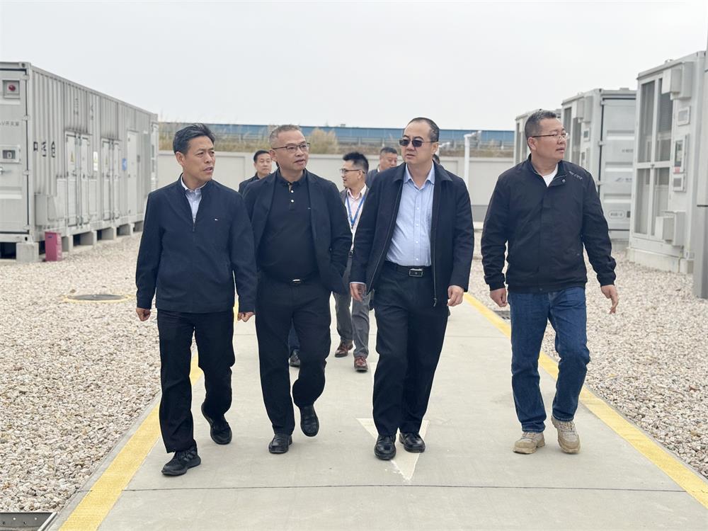 在西都储能电站,吴宏一行参观电站生产现场并听取项目建设单位智光电气公司介绍,详细了解电站建设生产运营情况和电网侧电化学储能电站调频技术特点。