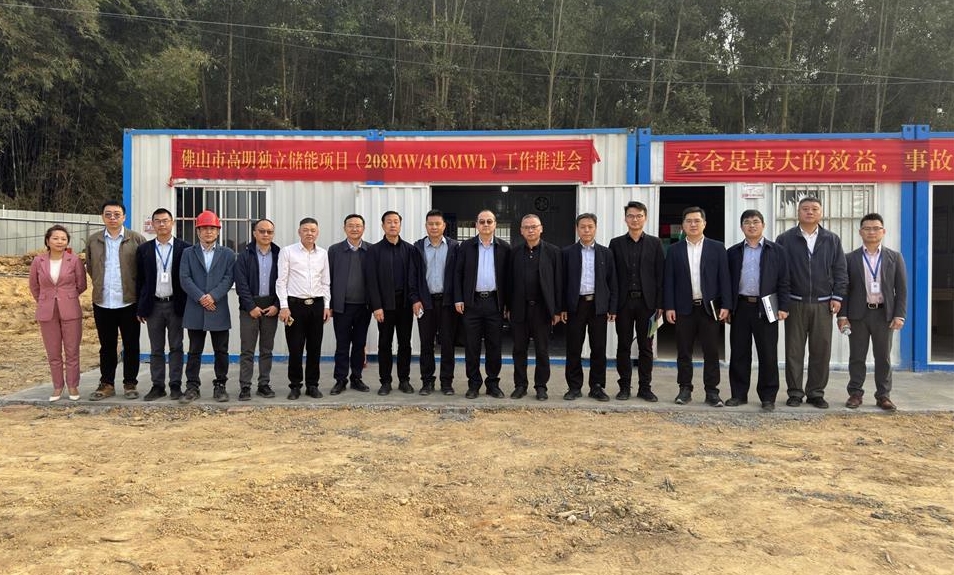 在佛山市高明独立储能项目工程现场,调研组一行检查了项目建设安全管理和施工工作开展情况,并在现场项目建设指挥部召开工作推进会,听取了项目建设单位广州储能集团以及EPC总包单位、监理单位、设计单位关于项目建设目标、计划、进度,工程重要节点及节后复工复产工作开展情况的汇报,详细了解了项目设备到货、配套试验计划情况及项目建设推进中存在问题。