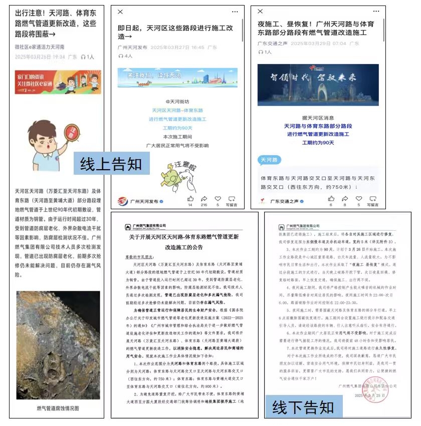 ??工程完工 成效满满。经过8个月紧张施工,5个更新改造工程顺利完成。其中,天河区天河路(天河城至万菱汇)燃气管道改造工程被广州市交通运输局作为城市道路占道施工优秀案例和创新宣传告知工作优秀案例供各单位学习借鉴,也为接下来推进黄埔大道和中山大道等中心城区主干道的管道改造工作提供了新的思路、新的标杆。